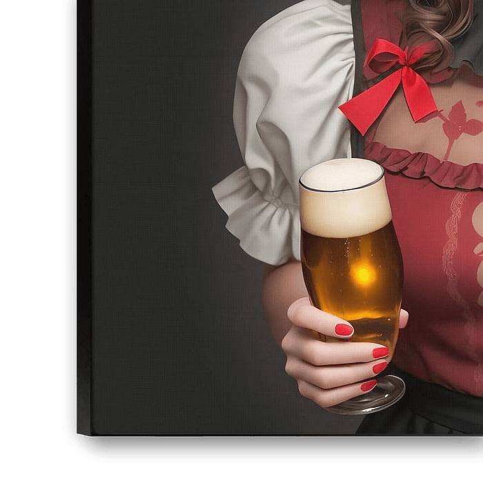 Bestelle das digitale Kunst Bild Schwarzwald "Birgit" mit Bollenhut und Bier von YArt als Reproduktion auf Leinwand, Alu-Dibond, als Poster, Fototapete oder Acrylglasbild.