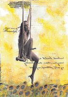 Bestelle diese Collage Schwingen in einem Sonnenblumenfeld von Nora Bland als Reproduktion auf Leinwand, Alu-Dibond, als Poster, Fototapete oder Acrylglasbild.