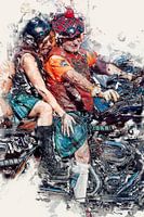 Bestelle dieses abstrakte Wandbild Scottish Harley Davidson Fahrer von Anouschka Hendriks als Reproduktion auf Leinwand, Alu-Dibond, als Poster, Fototapete oder Acrylglasbild.