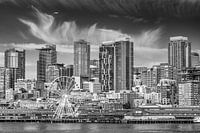Seattle Waterfront mit Riesenrad - Monochrom von Melanie Viola
