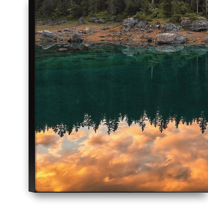 Bestelle das Foto Seeblick Dolomiten von Bjorn Renskers als Reproduktion auf Leinwand, Alu-Dibond, als Poster, Fototapete oder Acrylglasbild.