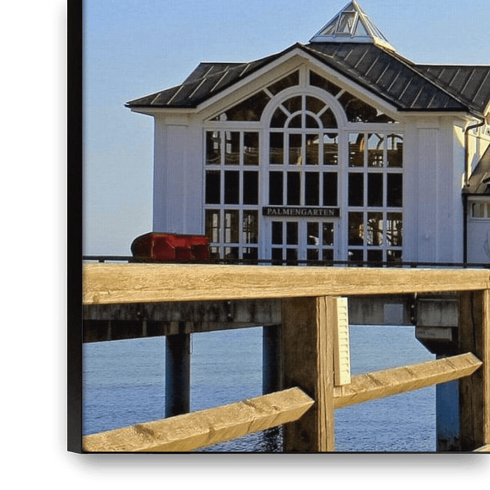 Bestelle dieses moderne Wandbild Seebrücke Sellin von Ostsee Bilder als Reproduktion auf Leinwand, Alu-Dibond, als Poster, Fototapete oder Acrylglasbild.