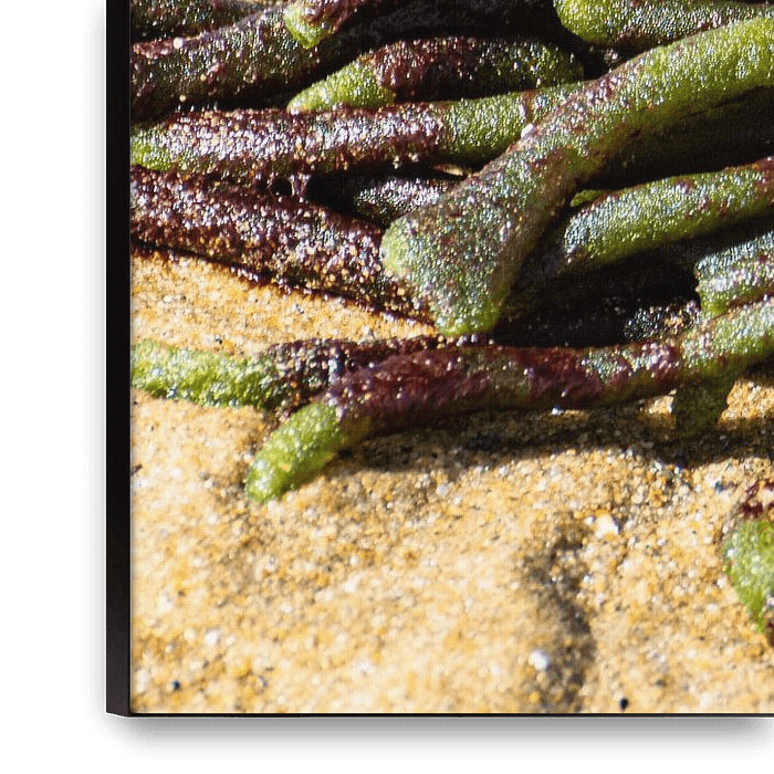 Bestelle das Foto Seetang am Strand von Hans Verhulst als Reproduktion auf Leinwand, Alu-Dibond, als Poster, Fototapete oder Acrylglasbild.