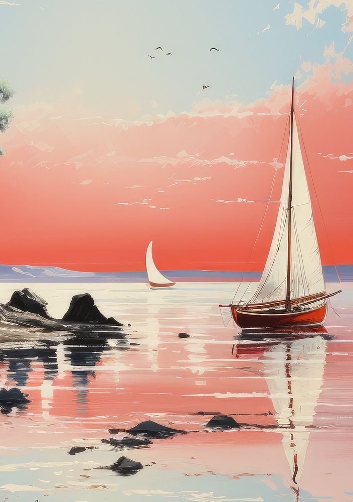 Gemälde eines Segelbootes auf dem Meer.
