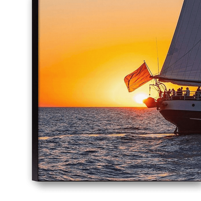 Segelschiff im Sonnenuntergang auf der Hanse Sail in Rostock.