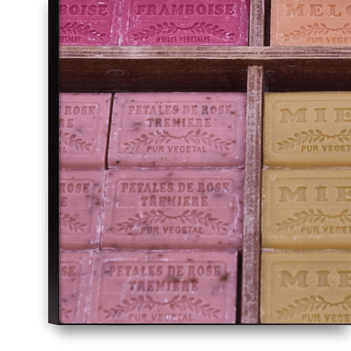 Traditionelle französische Seife in allen Arten von Düften. Jasmin, Opium, Himbeere, Melone, Rose und Honig