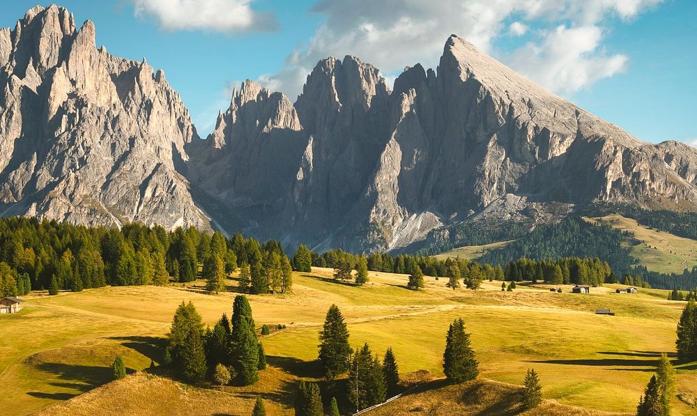Seiser Alm oder Seiser Alm, Dolomiten Langkofel und Plattkofel, Trentino-Südtirol, Italien, Europa