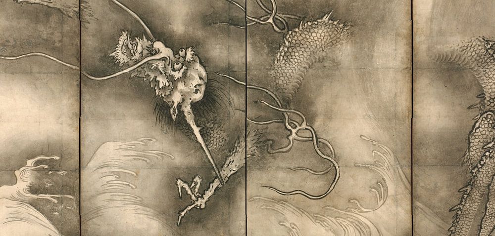 Diese beiden Geschöpfe repräsentieren die Elemente von Wasser und Wind in der chinesischen Kosmologie: Die wirbelnde Form des Drachen erinnert an Regenwolken, und der Tiger verkörpert die schreckliche, unvorhersehbare Kraft des Windes.