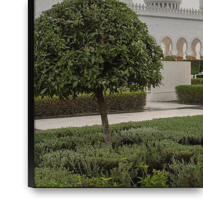 De Sheikh Zayed grand mosque in Abu Dhabi. Tijdens een mooie zonsondergang wordt het witte marmer prachtig geel en kom je helemaal tot rust in de omgeving. Hier zie je zijzicht van de moskee vanuit zijn omliggende tuinen.