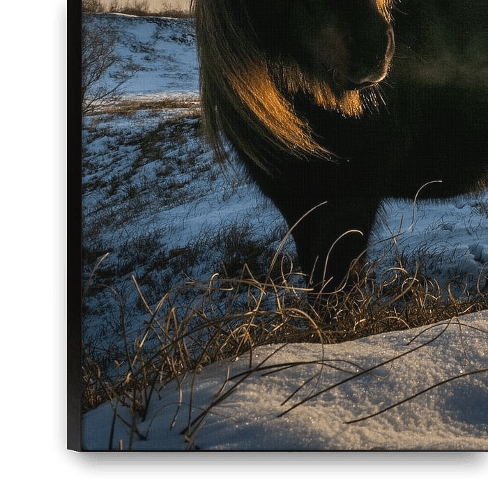 Dieses Shetlandpony stand so schön auf dem Hügel in einer verschneiten Landschaft mit der untergehenden Sonne. Ein perfekter Moment für einen Fotografen! Das Naturschutzgebiet ist das Zeepeduinen in der Nähe des Dorfes Burgh-Haamstede in Zeeland, wo ich wohne und oft anzutreffen bin.