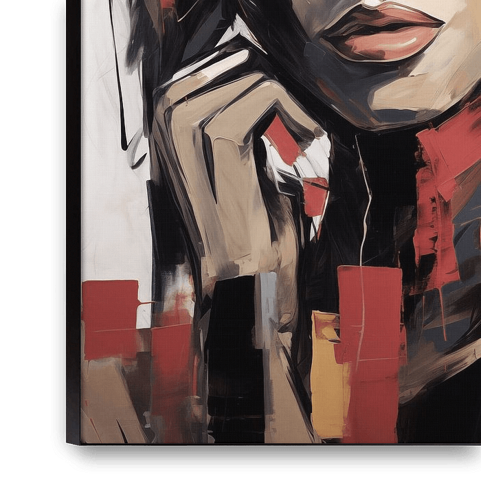 Abstraktes, ausdrucksstarkes Porträt einer Frau in matten Retrofarben.