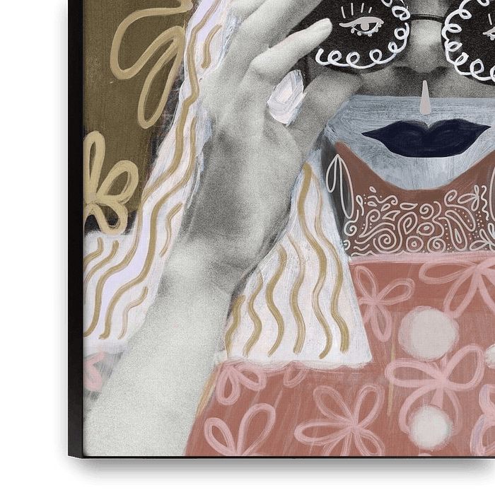 Porträt in Mischtechnik mit Ocker, Blumen und Rosa