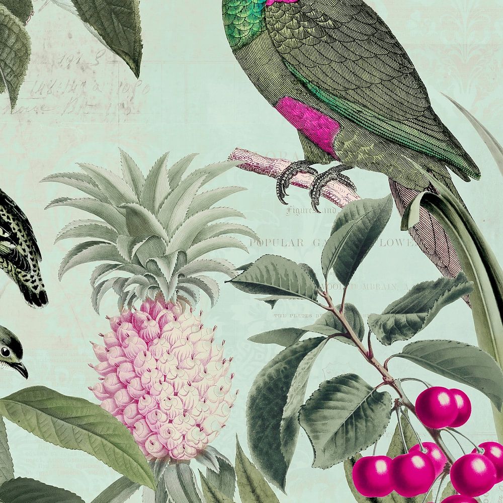 tropischer Sittich und exotische Vegetation mit Früchten, ideal für Naturliebhaber, Abenteurer, Reisende und Ornithologen