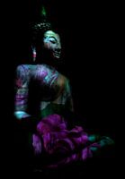 Diese Buddha-Statue, fotografierte ich in Thailand. Die Rose ist auch von mir fotografiert. Beide Bilder werden in Photoshop zusammengeführt und mit mehreren Schichten von Farbe verarbeitet.