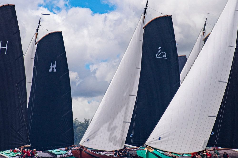 Skutsjezeilwedstrijden op het water in der Nähe von Ellawoude 2023 mit den alten schönen friesischen Skûtsjesilen, einem antiken Bootstyp, der hauptsächlich in Friesland verwendet und hauptsächlich in Drachten gebaut wurde.