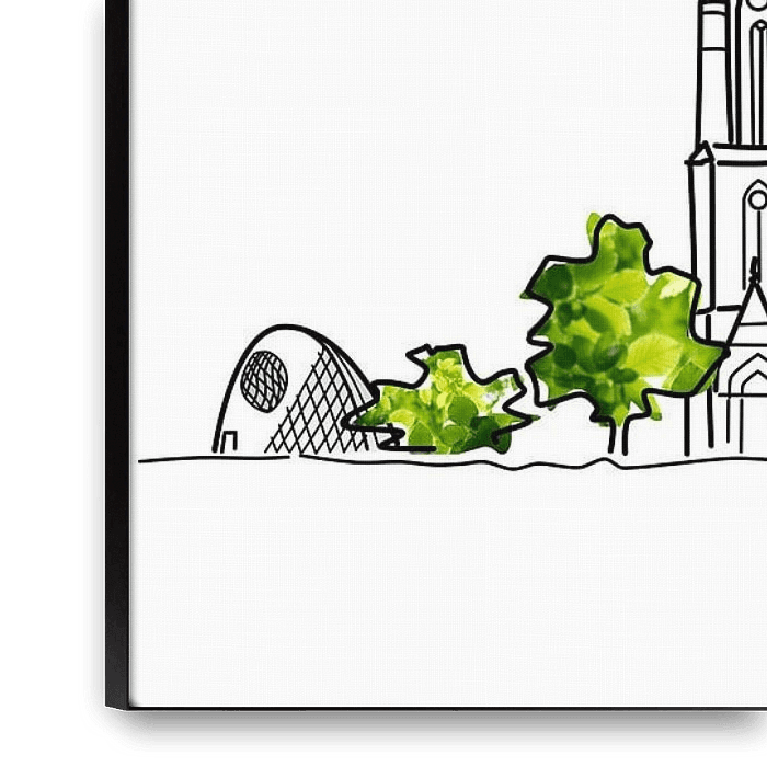 Ihre gewählte Kunst auf Leinwand, gespannt in einem Aluminiumrahmen. Schnell und einfach austauschbar für eine frische Ausstrahlung und ganz nach Ihren Wünschen.