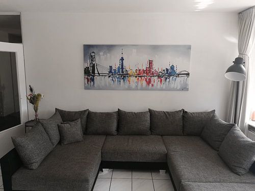 Die Skyline von Rotterdam, einschließlich der berühmten Erasmus-Brücke und Euromast. Wenn Ihr Interieur etwas Farbe verwenden kann, dann ist dieses Gemälde eine gute Wahl!