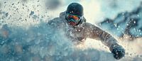 Snowboarder im Pulverschnee schwingend von Poster Art Shop
