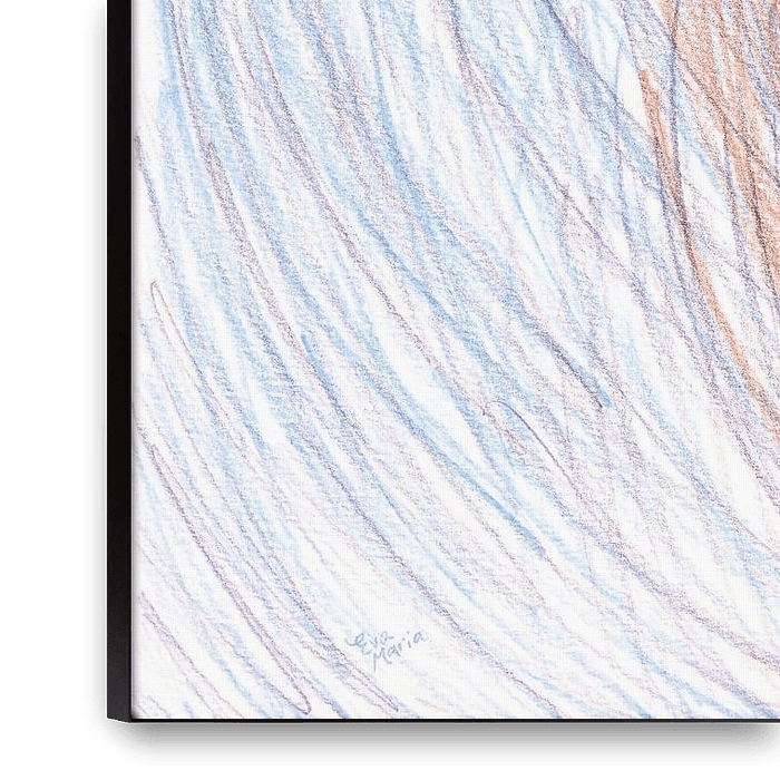 Zeichnung in Farbstift einer Frau. Ein Porträt, bei dem kontrastierende Farben verwendet werden. Sie hat einen energiegeladenen Blick und steckt voller neuer Pläne.