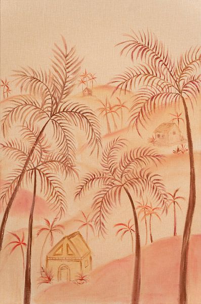 Ein Werk, das sich wie ein ruhiger, warmer Ort anfühlt, an dem sanfte Dünen und Palmen aufeinandertreffen.
