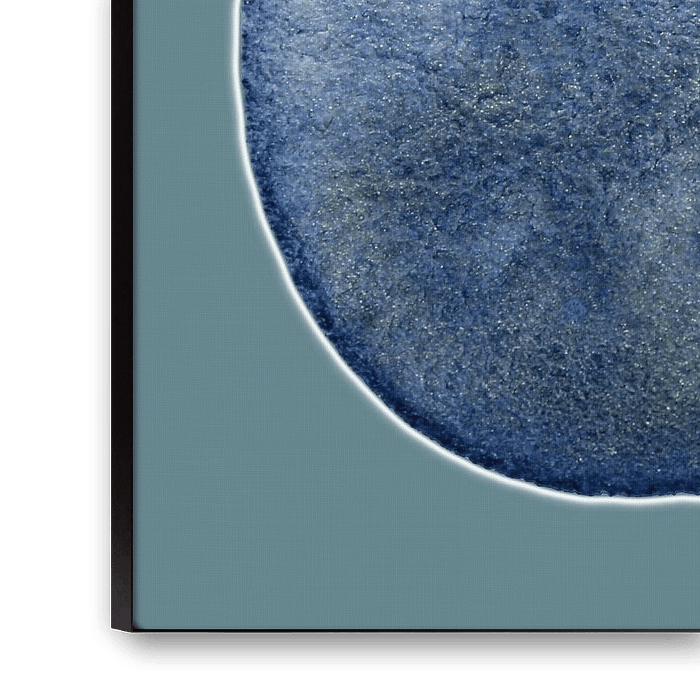 Dieser Druck gehört zum Blue Motion Trend, in dem sich helles Blau, tiefes Marineblau und Transformative Teal zu einem modernen, zeitlosen Look vereinen. Die Kombination aus sanften Pigmentausblühungen und mineralischer Textur macht dieses Werk besonders geeignet für Innenräume, die Ruhe, Einfachheit und Natureinflüsse bevorzugen: Skandinavischer Minimalismus, Japandi, Küstenruhe und Modern Organic.