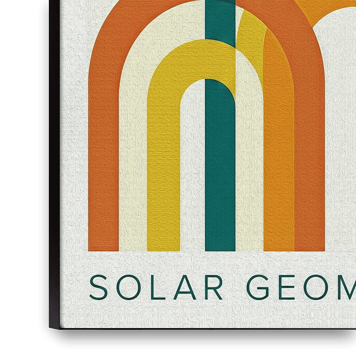Bringe den warmen Charme der 70er Jahre in dein Zuhause! Das Wandbild "Solar Geometry" vereint abstrakte, geometrische Formen mit einer erdigen Retro-Farbpalette aus Senfgelb, Terrakotta und tiefem Petrol. Die feine Leinwand-Textur verleiht dem Motiv eine besonders hochwertige, taktile Optik.