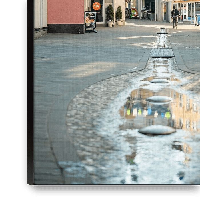 Ihre gewählte Kunst auf Leinwand, gespannt in einem Aluminiumrahmen. Schnell und einfach austauschbar für eine frische Ausstrahlung und ganz nach Ihren Wünschen.