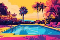 Bestelle dieses Popart-Wandbild Sommerabend am Pool von Digitale Schilderijen als Reproduktion auf Leinwand, Alu-Dibond, als Poster, Fototapete oder Acrylglasbild.