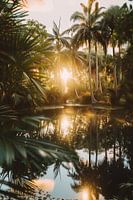 Bestelle dieses Landschafts-Wandbild Sonne bricht durch Palmen von fernlichtsicht als Reproduktion auf Leinwand, Alu-Dibond, als Poster, Fototapete oder Acrylglasbild.