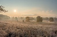 Bestelle das Foto Sonnenaufgang Brunssummerheide von John van de Gazelle fotografie als Reproduktion auf Leinwand, Alu-Dibond, als Poster, Fototapete oder Acrylglasbild.