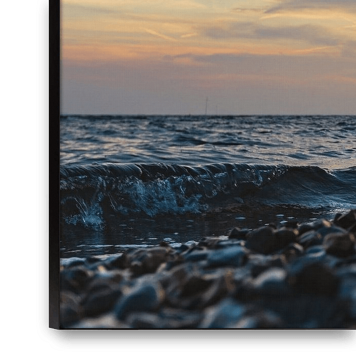 Ihre gewählte Kunst auf Leinwand, gespannt in einem Aluminiumrahmen. Schnell und einfach austauschbar für eine frische Ausstrahlung und ganz nach Ihren Wünschen.
