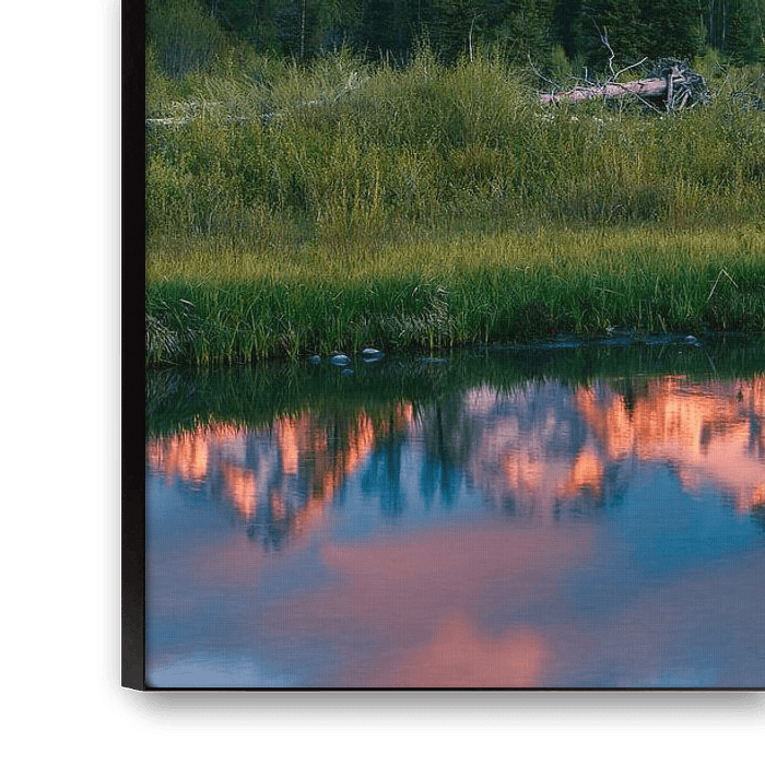 Ein Sonnenaufgang bei Schwabacher Landing, einer Bootsanlegestelle und einige Meilen südlich des berühmten Snake River Overlook, am Ostufer des Snake River im Grand Teton National Park, Wyoming, im Nordwesten der Vereinigten Staaten