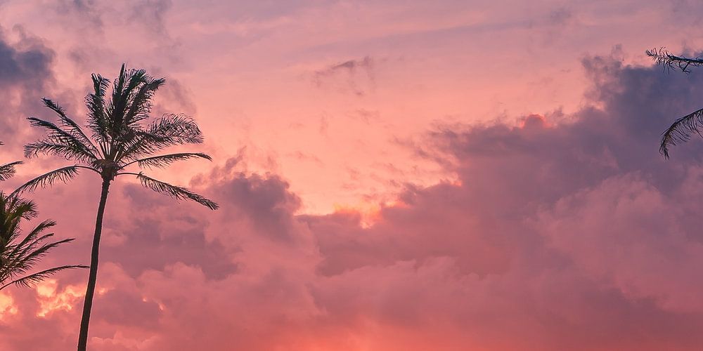Ein 2:1-Foto von einem Sonnenaufgang im Kapaa Beach Park an der Ostküste von Kauai, Hawaii. Wie der Name schon sagt, befindet sich dieser Strand im Herzen der östlichen Stadt Kapa'a am Pazifischen Ozean.