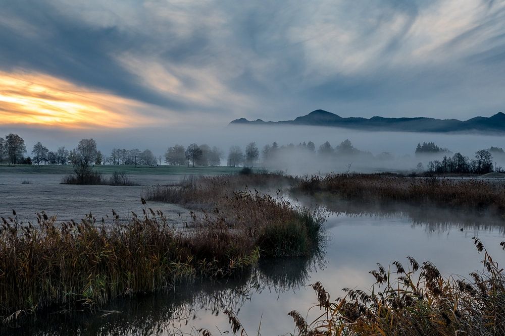 Ein Novembermorgen an der Ache bei Uffing. Mir hat diese Wolkenformation und die Nebelstimmung sehr gut gefallen.