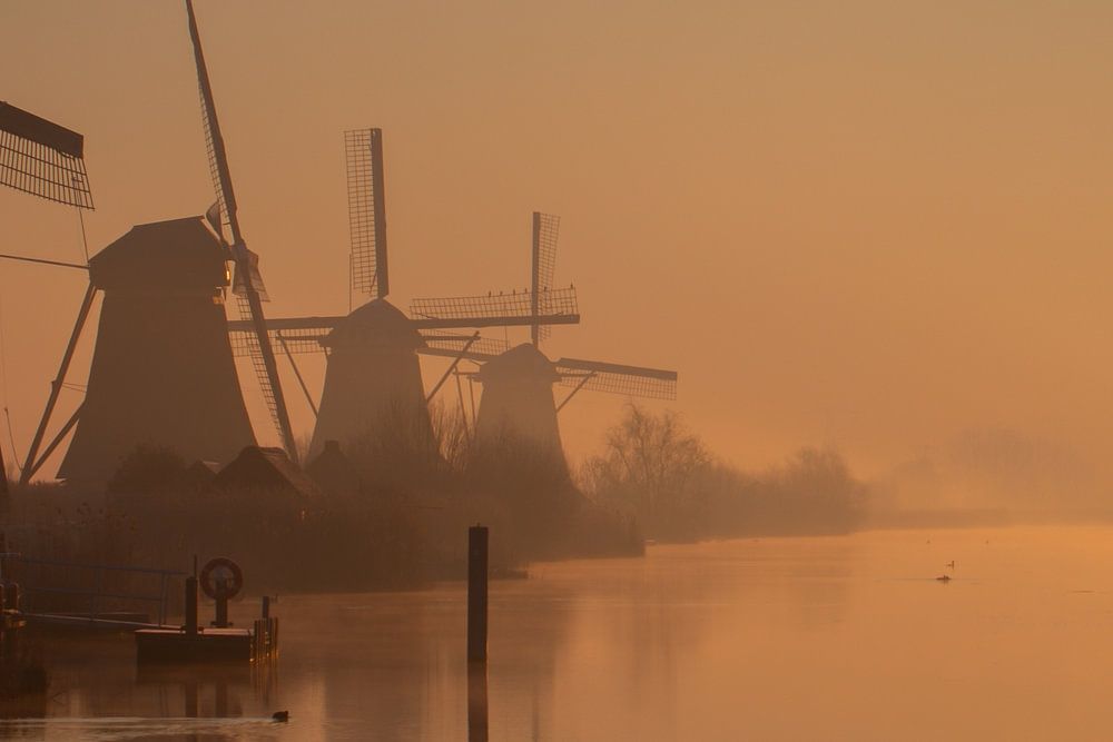 In diesem Moment war ich ganz allein hier - keine anderen Fotografen, keine Touristen. Meine Aufmerksamkeit wurde sofort von der ersten Mühle angezogen, die von der aufgehenden Sonne wunderschön beleuchtet wurde.