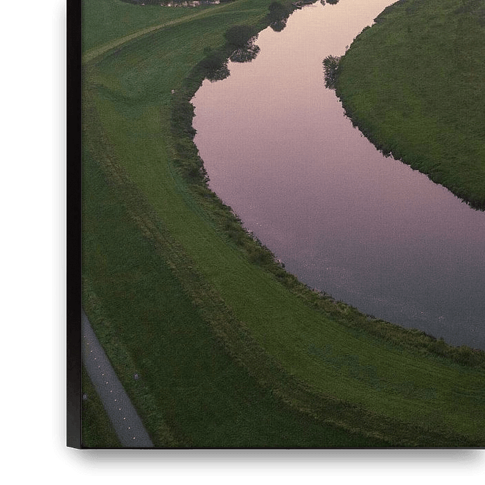 Bestelle das Foto Sonnenaufgang in der Vecht von oben gesehen von Sjoerd van der Wal Fotografie als Reproduktion auf Leinwand, Alu-Dibond, als Poster, Fototapete oder Acrylglasbild.