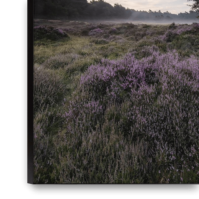 Bestelle dieses Landschafts-Wandbild Sonnenaufgang über dem Heidefeld Heidestein Utrechtse Heuvelrug. von Peter Haastrecht, van als Reproduktion auf Leinwand, Alu-Dibond, als Poster, Fototapete oder Acrylglasbild.