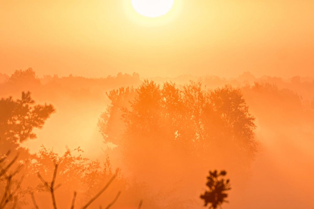 Die Sonne versucht, den Nebel in den Bargerveen mit ihren Strahlen zu vertreiben.