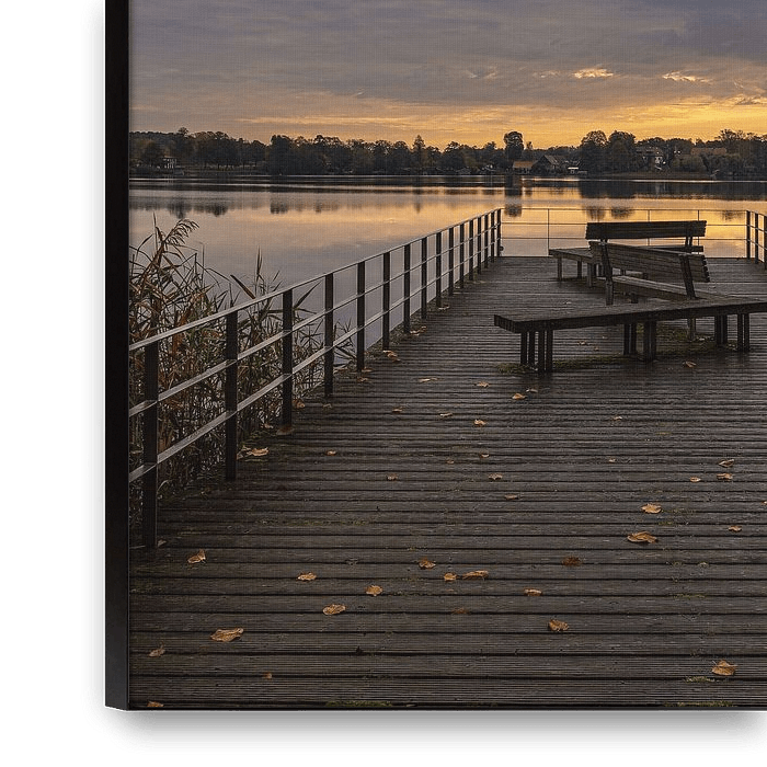 Bestelle das Foto Sonnenaufgang und Steg am Haussee in der Stadt Feldberg von Rico Ködder als Reproduktion auf Leinwand, Alu-Dibond, als Poster, Fototapete oder Acrylglasbild.