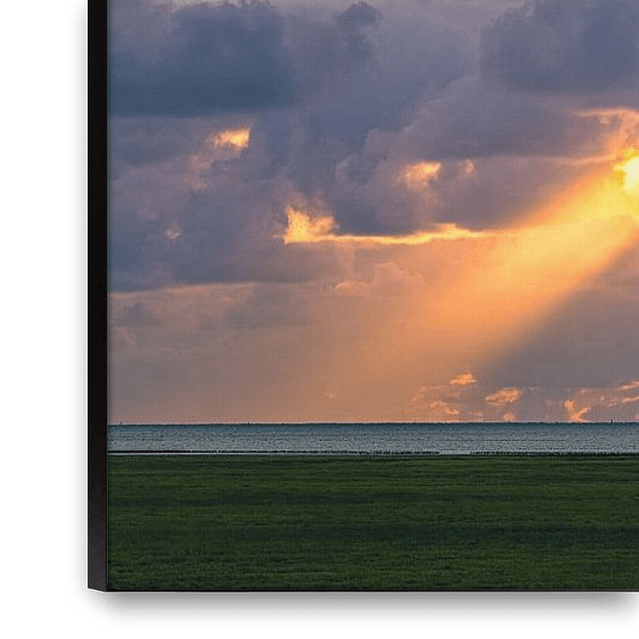Bestelle das Foto Sonnenstrahlen über dem Wattenmeer von Henk Meijer Photography als Reproduktion auf Leinwand, Alu-Dibond, als Poster, Fototapete oder Acrylglasbild.