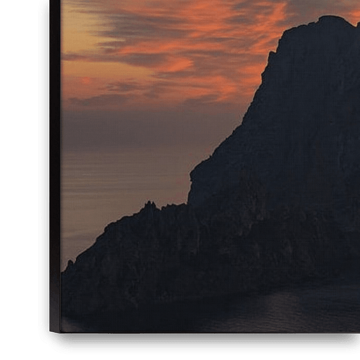 Bestelle das Foto Sonnenuntergang Es Vedrà , Ibiza Spanien - Panoramafoto von Patrick Fotografeert als Reproduktion auf Leinwand, Alu-Dibond, als Poster, Fototapete oder Acrylglasbild.