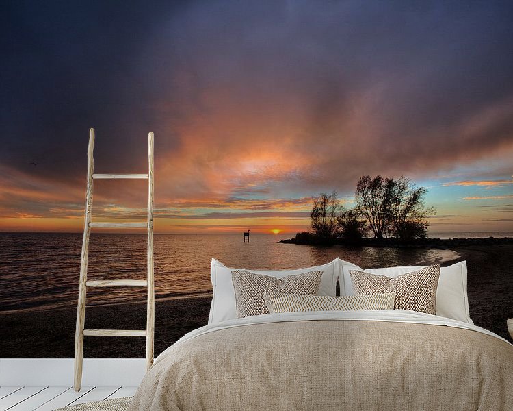 Schöner Sonnenuntergang am Strand des IJsselmeeres bei Urk
