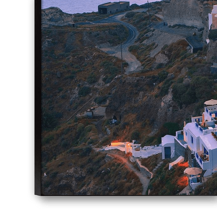 Die Stadt Oia, die sich bei Sonnenuntergang an der Nordspitze Santorins befindet, ist eine der Kykladeninseln im Ägäischen Meer, Griechenland.