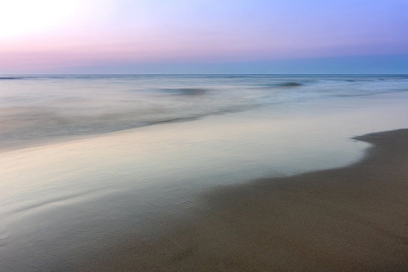Ein Foto, das während eines sanften Sonnenuntergangs mit Pastelltönen am Himmel aufgenommen wurde. Die ruhige See gibt eine schöne Atmosphäre. Fotografiert auf Ameland, einer der schönen Watteninseln.