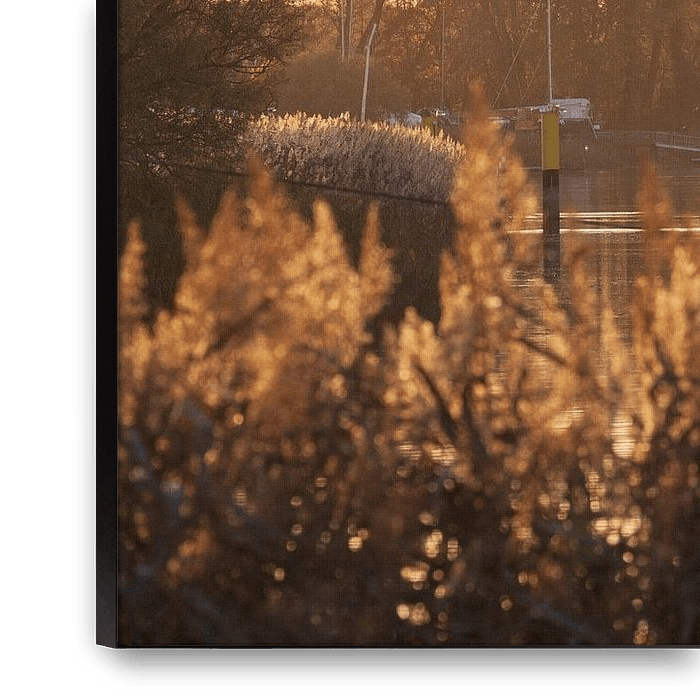 Bestelle dieses Landschafts-Wandbild Sonnenuntergang an der Lesum von Torsten Krüger als Reproduktion auf Leinwand, Alu-Dibond, als Poster, Fototapete oder Acrylglasbild.