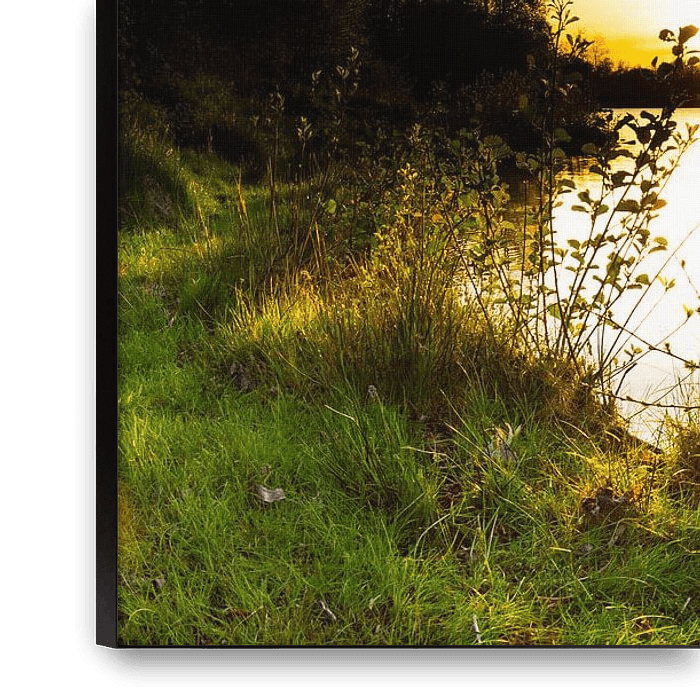 Bestelle dieses Landschafts-Wandbild Sonnenuntergang an einem See von Günter Albers als Reproduktion auf Leinwand, Alu-Dibond, als Poster, Fototapete oder Acrylglasbild.