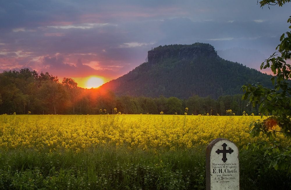 Blick auf den Lilienstein von Kurort Gohrisch in der Sächsischen Schweiz im Mai