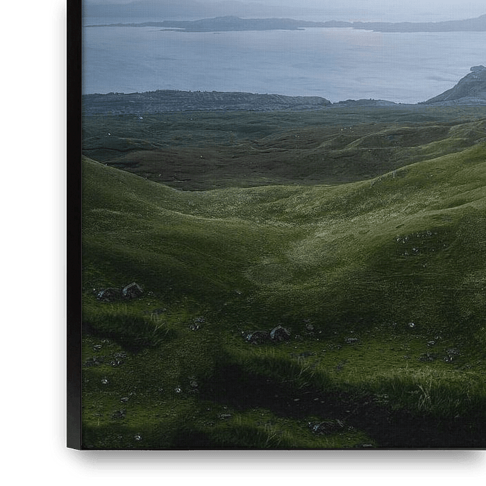 Ihre gewählte Kunst auf Leinwand, gespannt in einem Aluminiumrahmen. Schnell und einfach austauschbar für eine frische Ausstrahlung und ganz nach Ihren Wünschen.