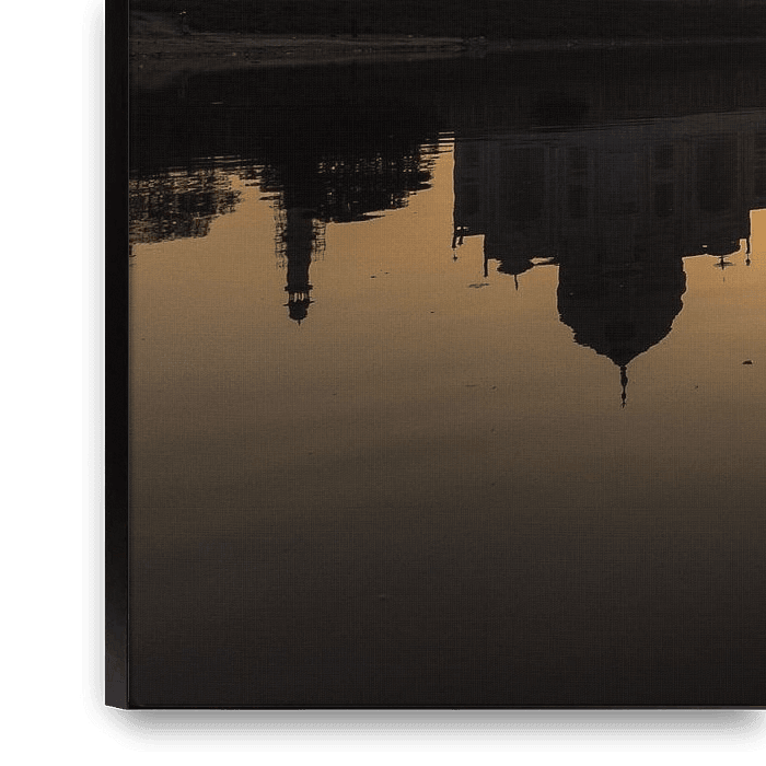 Sonnenuntergang mit Reflektion des Taj Mahal
