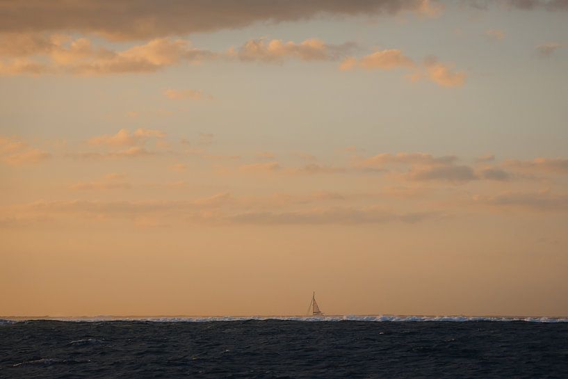 Bestelle das Foto Sonnenuntergang mit Segelboot in Fidschi von Carmen Kuijper als Reproduktion auf Leinwand, Alu-Dibond, als Poster, Fototapete oder Acrylglasbild.